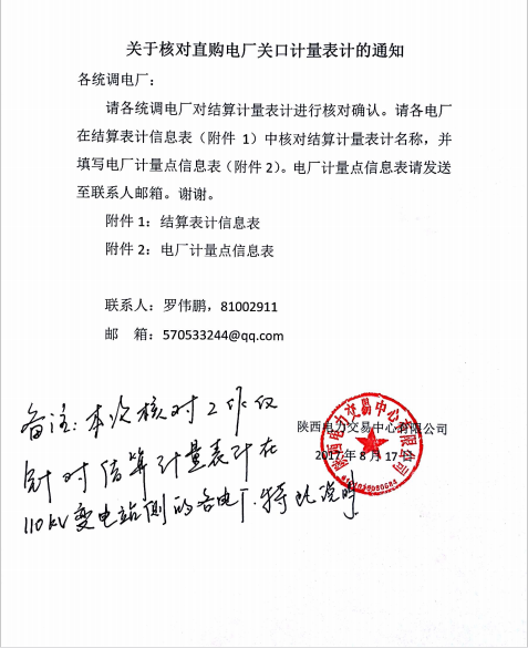 陜西電力交易中心發(fā)布核對(duì)直購(gòu)電廠關(guān)口計(jì)量表計(jì)的通知