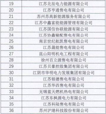 江蘇第一批36家售電公司開始公示