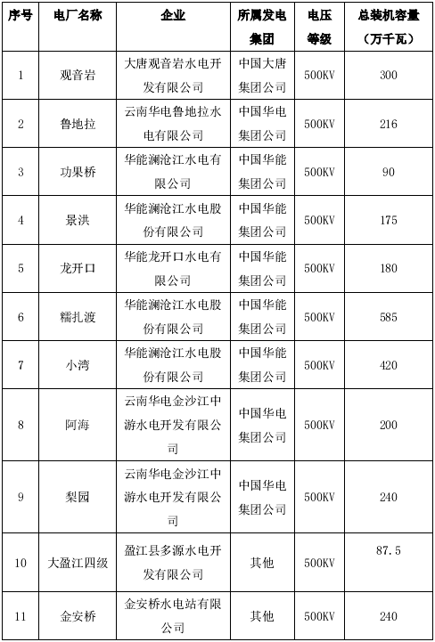 附件:云南省內(nèi)參與跨省區(qū)電力市場(chǎng)化交易相關(guān)主體名單