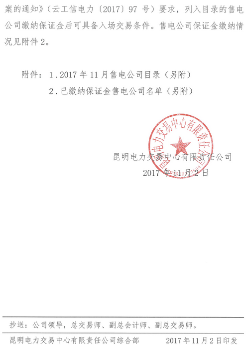 同時,列入目錄的售電公司繳納保證金后可具備入場交易條件。