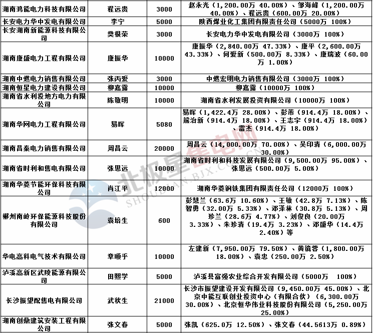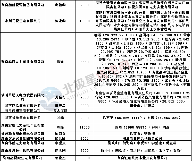 湖南第二批售電公司工商信息~~