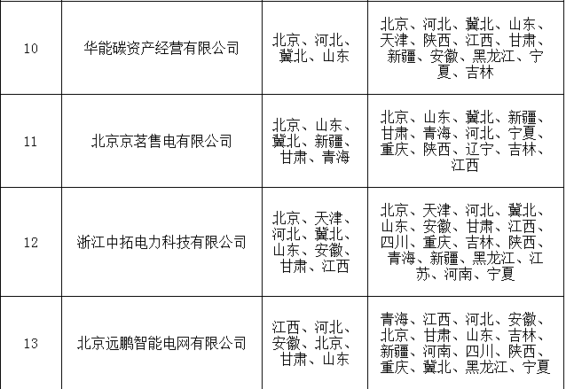 公示期間,任何單位和個人如有異議,可采用書面或口頭等多種形式向北京電力交易中心反映情況。本次公示售電公司目錄如下: