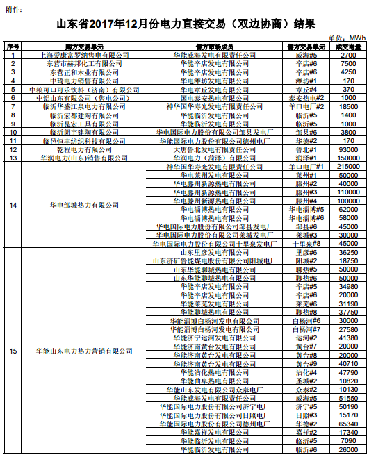 山東發(fā)布《12月份電力直接交易(雙邊協(xié)商)結果的公告》