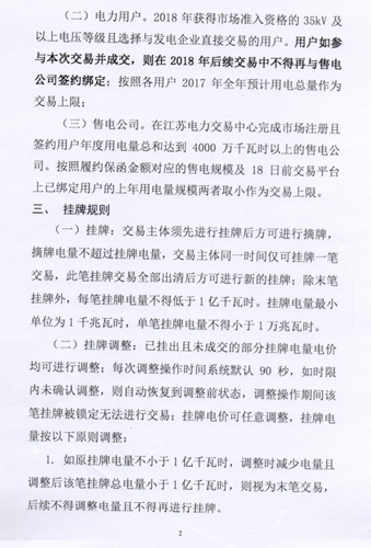江蘇電力交易中心發(fā)布2018年江蘇電力市場年度掛牌交易公告