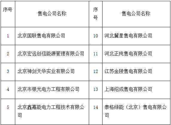 冀北電力交易中心關(guān)于受理注冊(cè)的售電公司公示相關(guān)信息的公告 共計(jì)27家售電公司