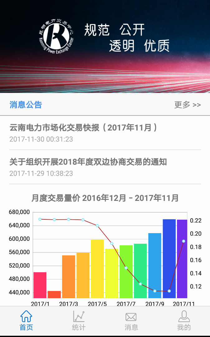 作為一款全新的云南電力交易市場(chǎng)專用移動(dòng)應(yīng)用平臺(tái),昆明電力交易中心APP集云南電力市場(chǎng)交易數(shù)據(jù)展示,交易中心信息發(fā)布,市場(chǎng)主體自主交易數(shù)據(jù)查詢,歷史交易信息查詢等多種功能于一身,并提供表格、柱狀圖、餅圖、K線圖等多種數(shù)據(jù)展示方式,全方位展現(xiàn)云南電力市場(chǎng)交易信息。