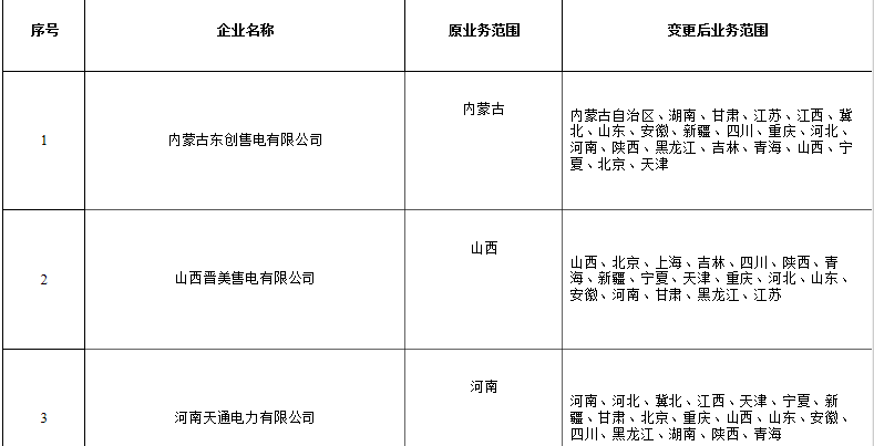 北京新公示8家業(yè)務(wù)范圍變更的售電公司