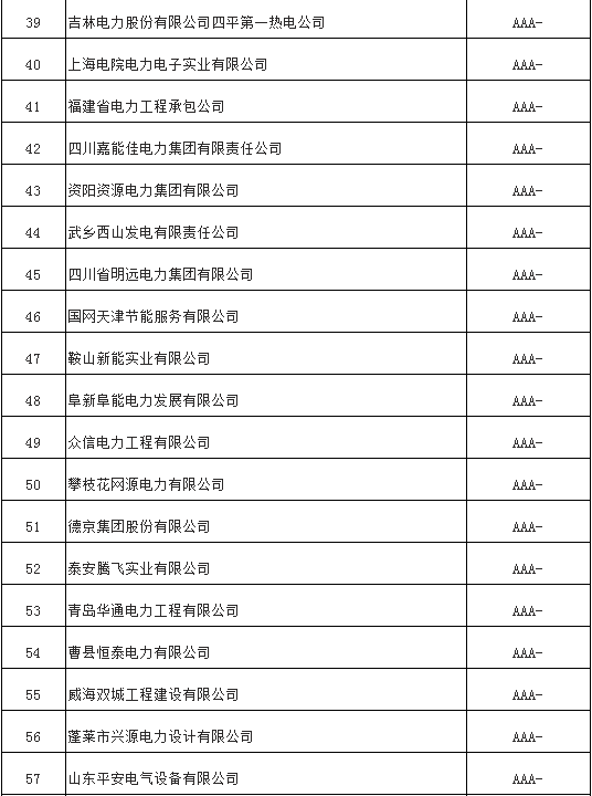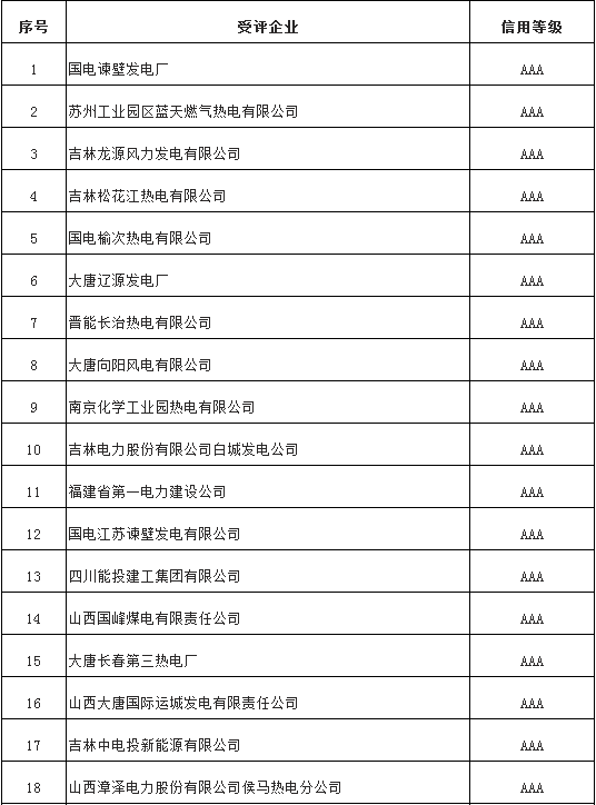 近日中電聯(lián)電力評價咨詢院發(fā)布了《電力行業(yè)2017年信用企業(yè)評價結(jié)果公示》。其中共有101個電力企業(yè)信用等級為AAA,詳情如下:電力行業(yè)2017年