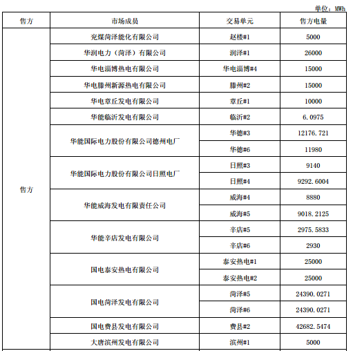 無約束交易結(jié)果經(jīng)山東電力調(diào)度控制中心安全校核后,確認(rèn)16家統(tǒng)調(diào)發(fā)電企業(yè)(23臺發(fā)電機組)與2家電力用戶及19家售電公司達成交易電量323200兆瓦時,統(tǒng)一出清價為391元/兆瓦時。原文如下: