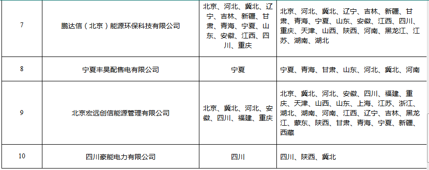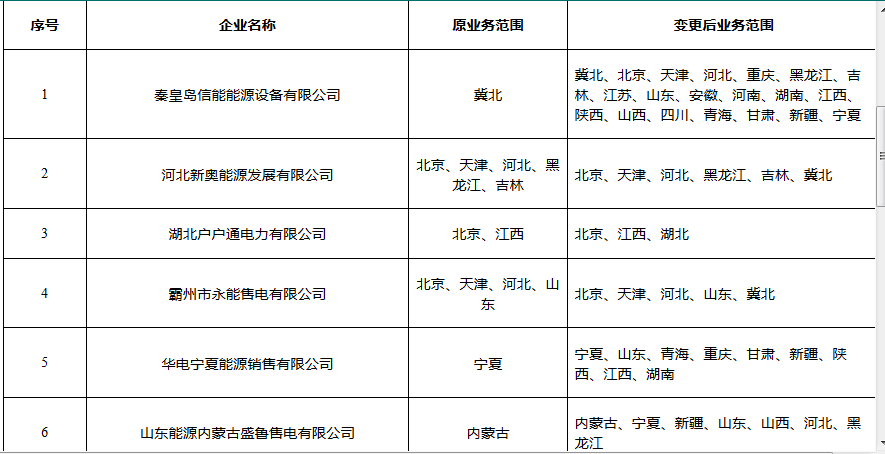 北京新公示業(yè)務(wù)范圍變更的10家售電公司