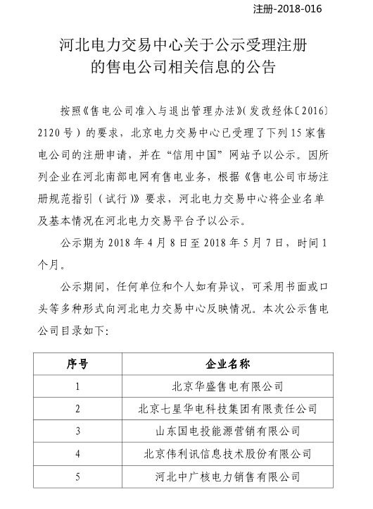 河北新公示19家售電公司 另有13家售電公司通過公示