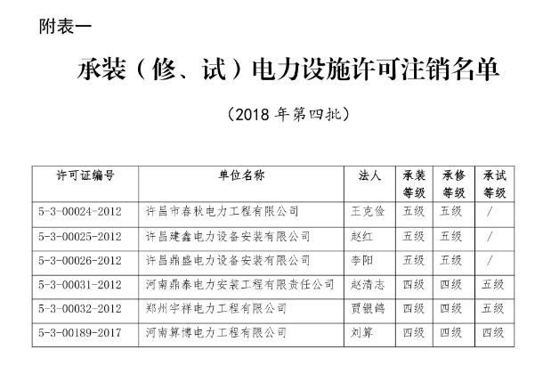 日前國家能源局河南監(jiān)管辦公室發(fā)布了《關(guān)于注銷部分企業(yè)許可證的決定》,根據(jù)《承裝(修、試)電力設(shè)施許可證管理辦法》(電監(jiān)會28號令)、《電