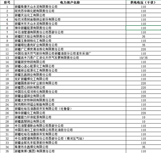 新疆電力交易中心日前發(fā)布了《新疆電網(wǎng)2018年第二批發(fā)電企業(yè)與電力用戶直接交易電力用戶名單》,公布45家電力用戶名單和用戶的電壓等級。詳情如下: