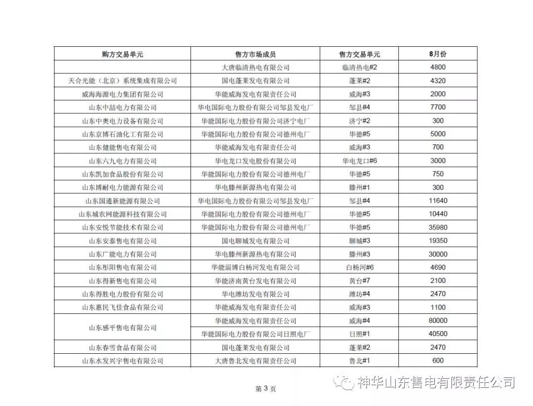 山東省2018年8月份電力直接交易(雙邊協(xié)商)結(jié)果