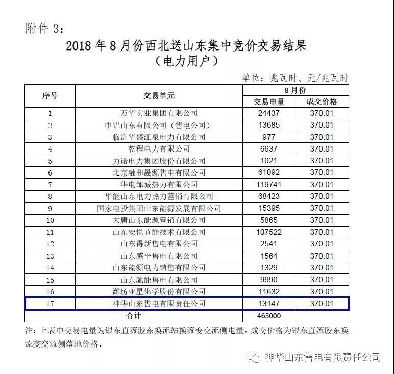 【銀東競價】2018年8月份西北送山東集中競價交易結(jié)果
