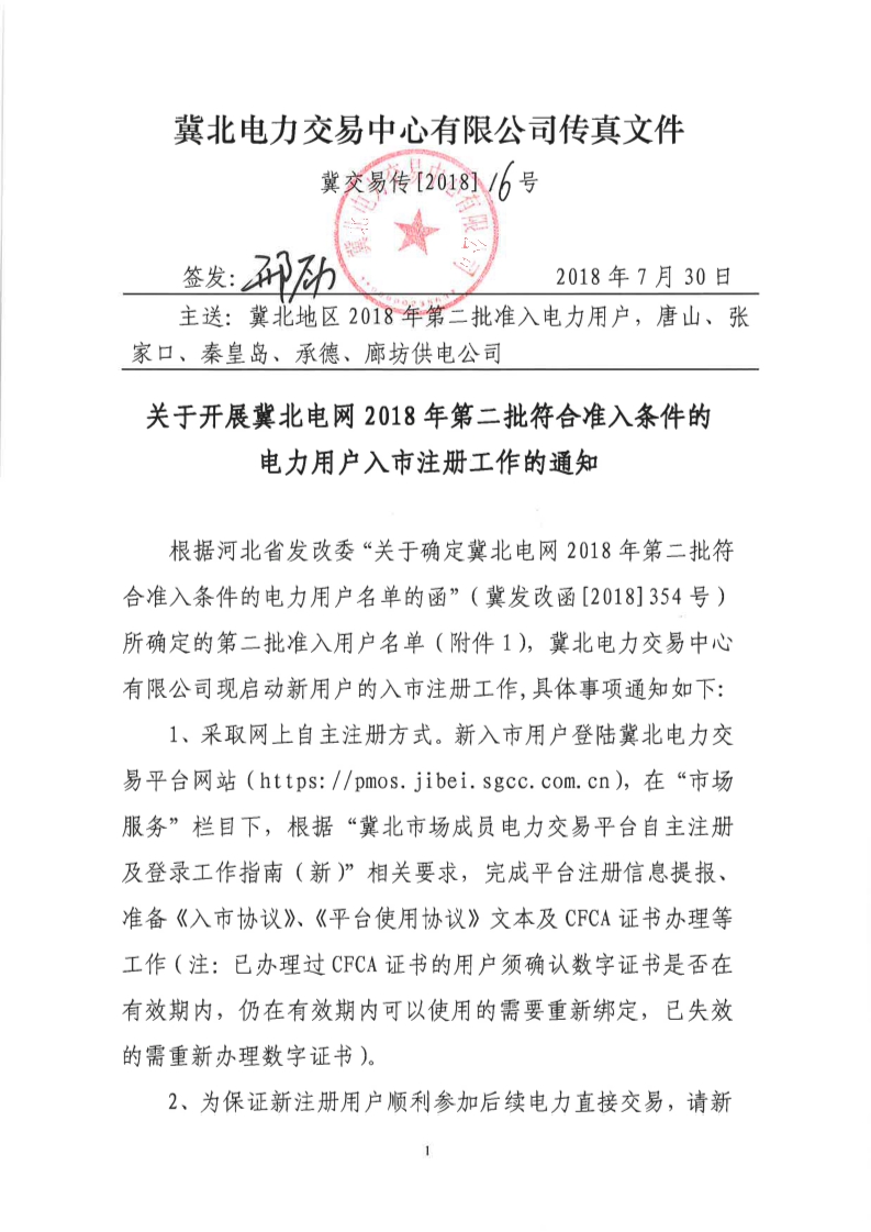 冀北電力交易中心日前發(fā)布了《關(guān)于開展冀北電網(wǎng)2018年第二批符合準(zhǔn)入條件的電力用戶入市注冊工作的通知(冀交易傳[2018]16號)》,根據(jù)河北省發(fā)改委“關(guān)于確定冀北電網(wǎng)2018年第二批符合準(zhǔn)入條件的電力用戶名單的函,冀北電力交易中心有限公司現(xiàn)啟動新用戶的入市注冊工作。