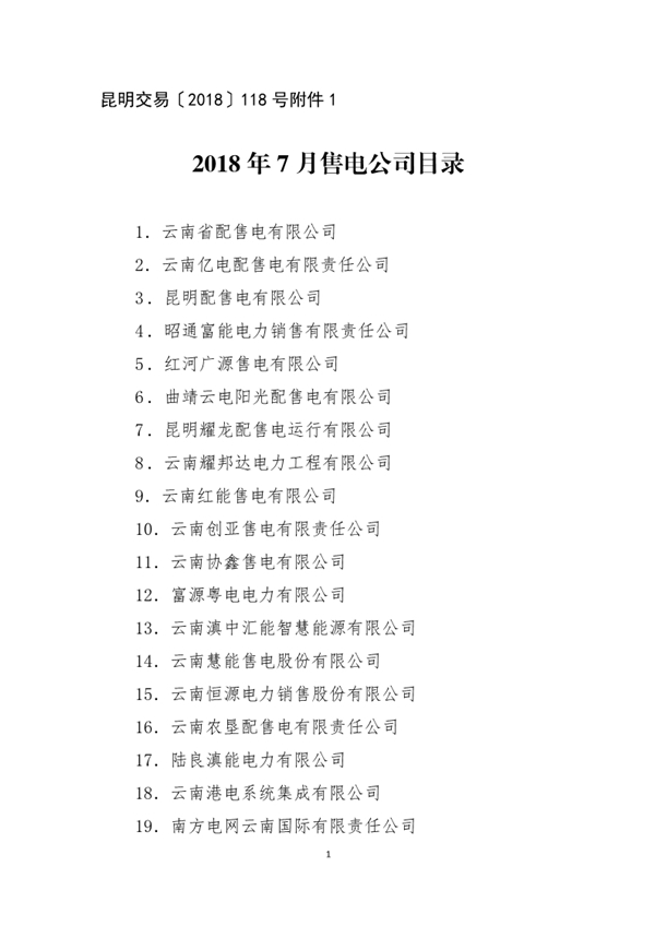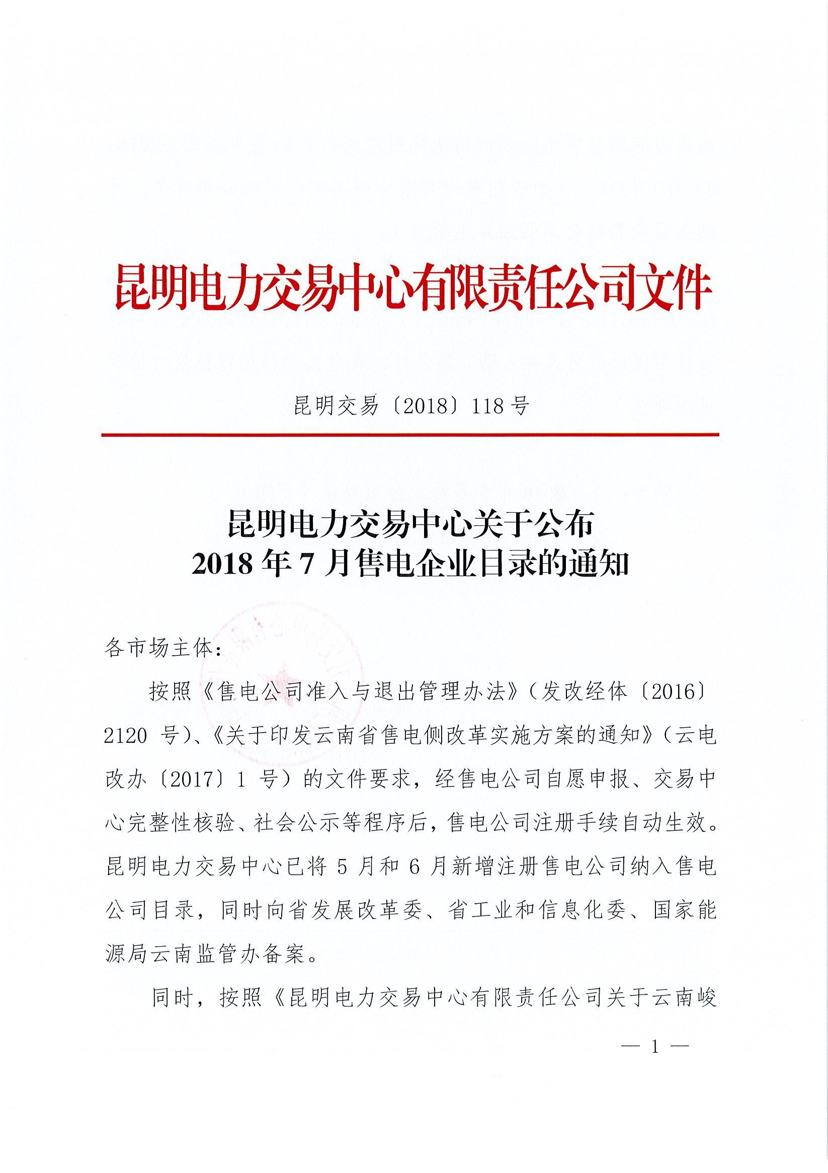 云南2018年7月售電企業(yè)目錄:列入目錄的售電公司履行信用保證后可具備入場(chǎng)交易條件