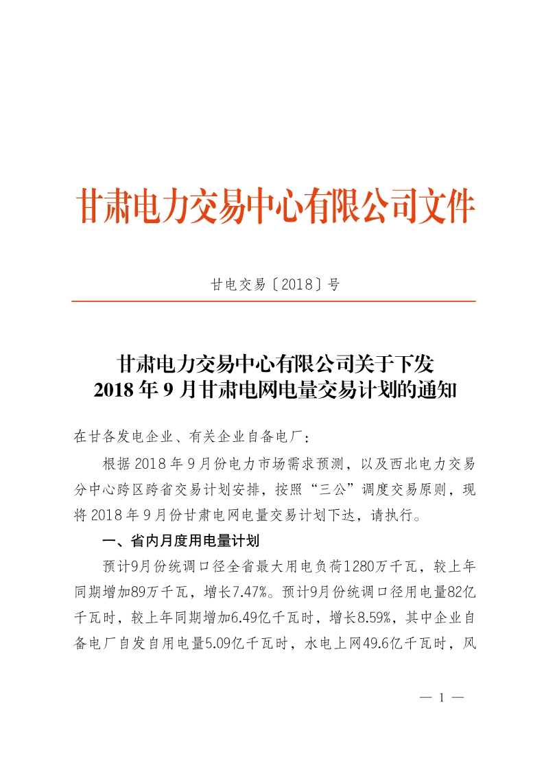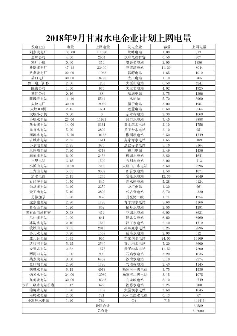 附件:2018年9月甘肅水電企業(yè)計(jì)劃上網(wǎng)電量