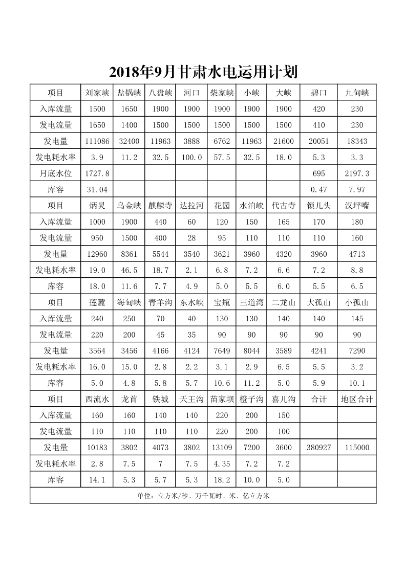 附件:2018年9月甘肅水電運(yùn)用計(jì)劃
