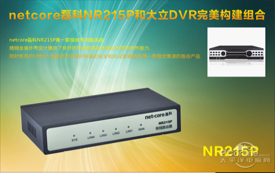 為此netcore磊科NR215P和大立DVR完美的構建組合, 瞬間華麗變身為視頻專用路由。極大的順應了用戶需求,讓每一個情景監(jiān)控都展露無疑。