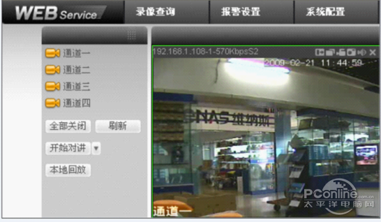 說明動態(tài)域名解析服務已經(jīng)在運行。此時,在外網(wǎng)的PC上首先要啟用INTERNET工具-INTERNET選項-安全-自定義級別中的ActiveX控件和插件,7個全部啟用,再在IE地址欄中輸入域名+端口號,就可以看到監(jiān)控畫面了: