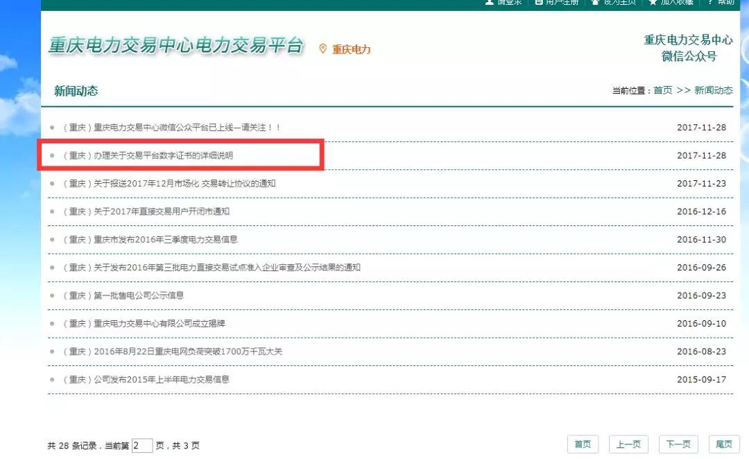 大用戶(與電廠進行直接交易的用戶)需要辦理數(shù)字證書,零售用戶(由售電公司代理進行交易的用戶)不強制辦理數(shù)字證書(根據(jù)自身需求),辦理數(shù)字證書流程請查看重慶電力交易中心交易平臺首頁新聞動態(tài)欄目文件“辦理關(guān)于交易平臺數(shù)字證書的詳細說明”,如下圖: