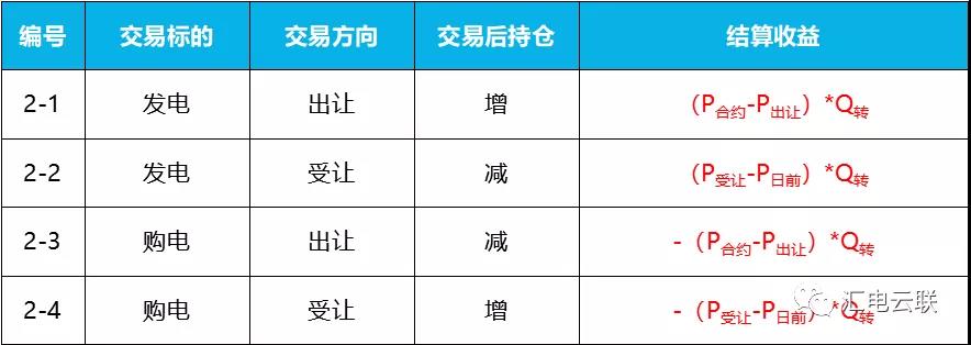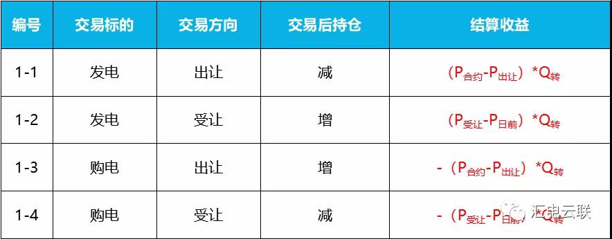 根據(jù)發(fā)電企業(yè)在中長(zhǎng)期合約轉(zhuǎn)讓交易中根據(jù)4種不同的交易行為,其交易結(jié)果以及結(jié)算可由下表表示: