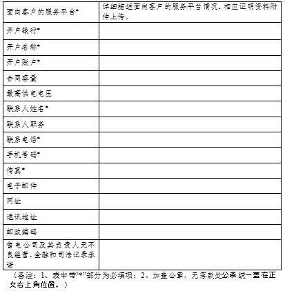 (2)各售電公司按照附件1-13要求填寫,并掃描成PDF格式上傳(文件名同附件名稱),同時需將《售電公司公示信息》、《工商營業(yè)執(zhí)照》、《資產(chǎn)證明》合并成一個文件(PDF格式)通過天津電力交易平臺(其他附件模塊)上傳作為信用公示材料(統(tǒng)一命名為“***售電公司天津公示材料”)。在注冊過程中應(yīng)先把網(wǎng)頁上信息填寫完整并保存后,再做修改。