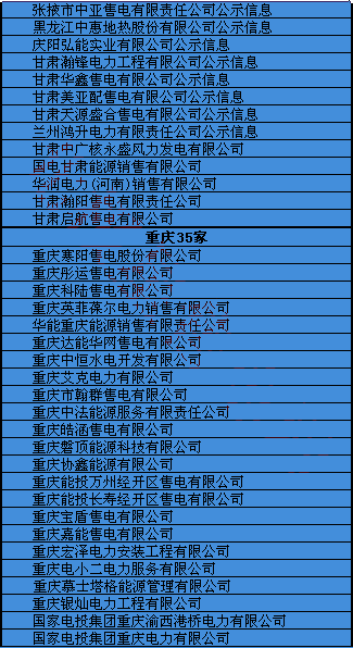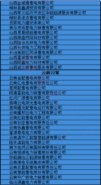各地售電公司名錄
