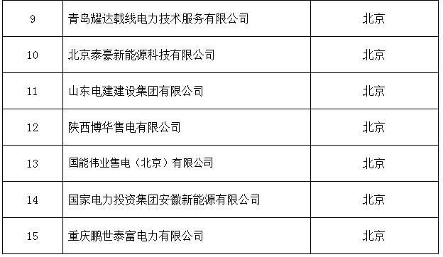 公示期為2019年1月2日至2019年1月31日,時間為1個月。本次公示售電公司名單如下: