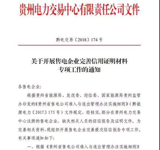貴州發(fā)布了《關于開展售電企業(yè)完善信用證明材料專項工作的通知》