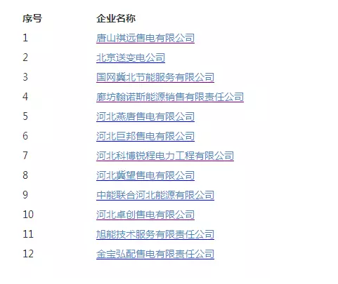 近日冀北電力交易中心公示了12家售電公司信息,繼河北電力交易中心首次公示29家售電公司之后,僅隔一天,北京電力交易中心公示了一批跨省區(qū)售電公司,其中業(yè)務范圍包括河北的售電公司有12家,加上此次冀北電力交易