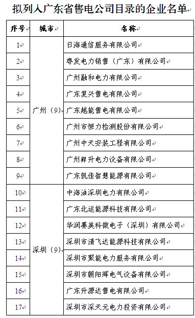 廣東第七批擬列入售電公司目錄企業(yè)名單公示,共28家,至此廣東已公示284家售電公司