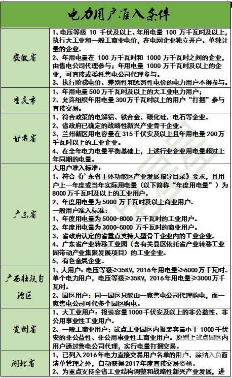 各省電力用戶準(zhǔn)入條件看下表哈: