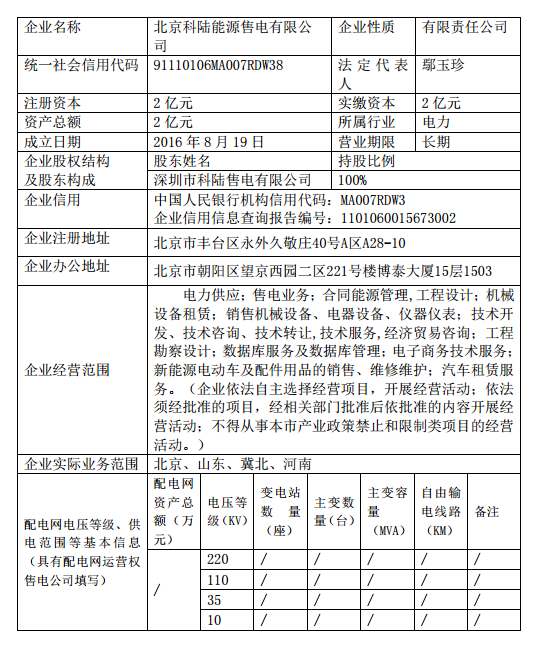按照國家發(fā)改委、國家能源局《售電公司準入與退出管理辦法》的要求,北京電力交易中心受理了下列售電公司的注冊申請,對售電公司提交的市場準入申請材料進行了完整性核驗,現(xiàn)將企業(yè)名單及基本情況予以公示。