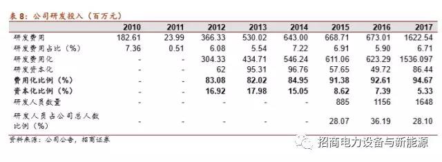 效率提升,盈利及現(xiàn)金流表現(xiàn)良好:公司毛利率及凈利率分別提升5個(gè)點(diǎn)及3個(gè)點(diǎn),至30%、15%,ROE超16%,盡管匯兌損益導(dǎo)致了財(cái)務(wù)費(fèi)用的增加,但費(fèi)用率水平較低,17年公司研發(fā)資本化比例較低,為5.33%,較16年下降2.06個(gè)百分點(diǎn),較12年下降11.59個(gè)百分點(diǎn),研發(fā)費(fèi)用的增長(zhǎng)以及重組產(chǎn)生的一次性費(fèi)用使得管理費(fèi)用有所提升。