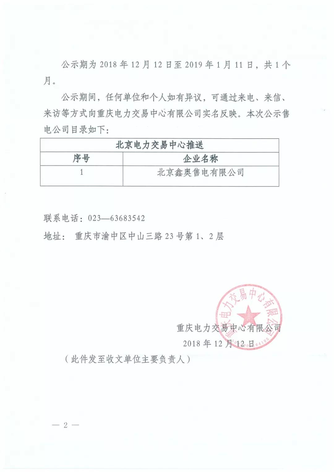 重慶關(guān)于公示受理注冊(cè)的售電公司有關(guān)信息的公告