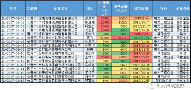 7月7日,吉林省首批17家售電公司公示,見(jiàn)下表: