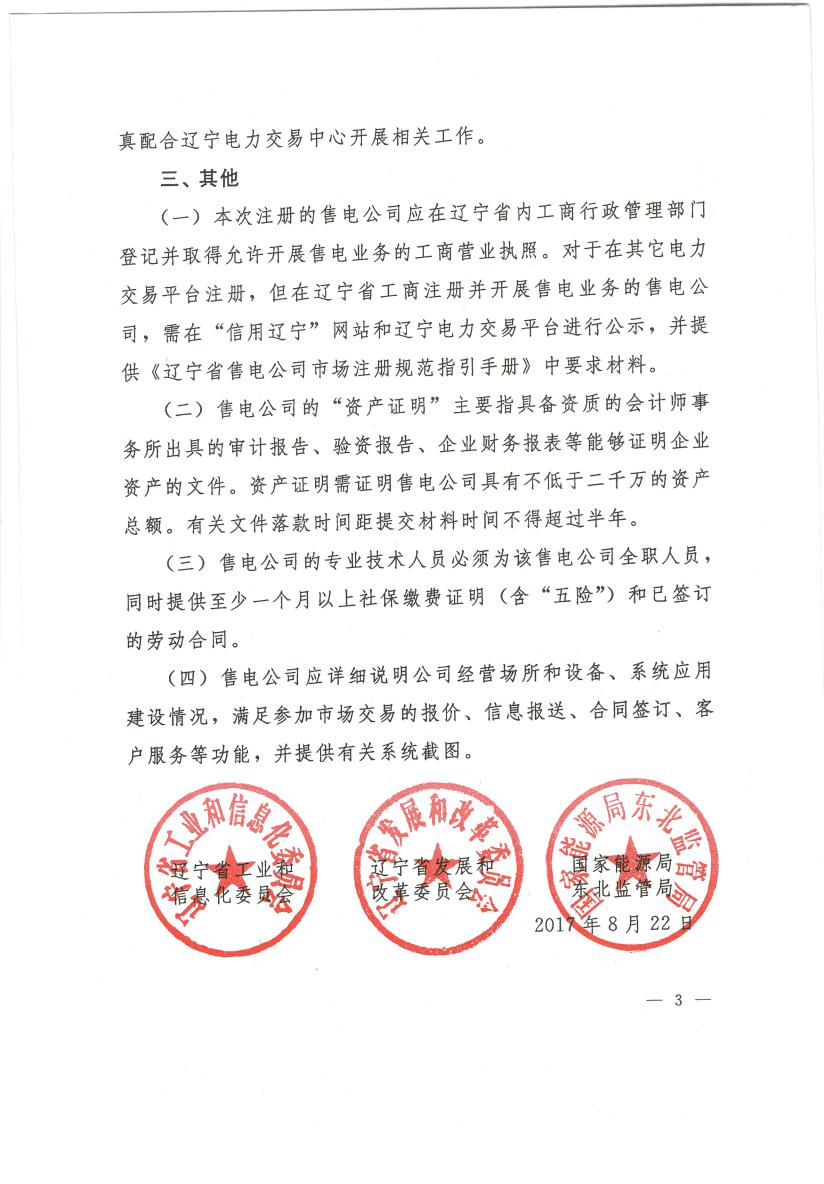 遼寧開(kāi)展售電公司登記注冊(cè)工作