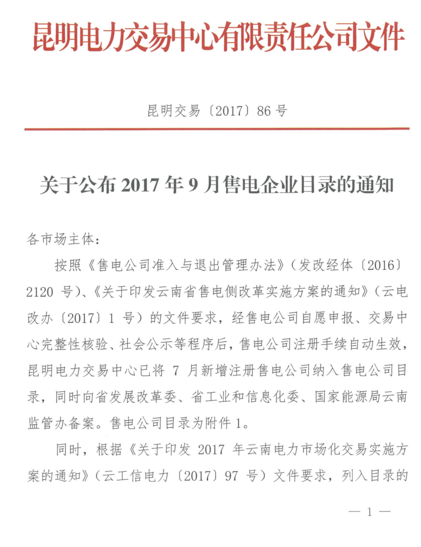 云南9月售電企業(yè)目錄:售電公司增至56家