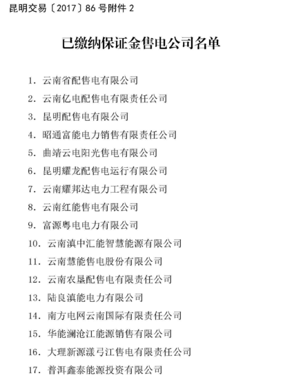 昆明電力交易中心日前發(fā)布了2017年9月售電企業(yè)目錄的通知,至此,云南售電公司達56家,已繳納保證金的售電公司有26家。詳情如下: