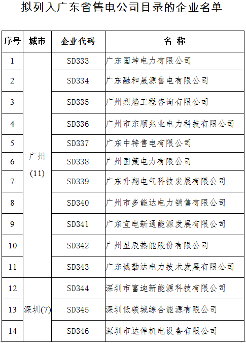 廣東省經濟和信息化委關于公布第十一批列入售電公司目錄企業(yè)名單的通知
