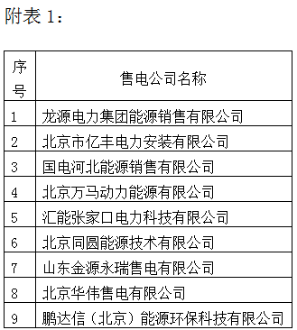 依據(jù)國家發(fā)改委、國家能源局《售電公司準(zhǔn)入與退出管理辦法》,冀北電力交易中心有限公司受理了北京交易中心推送冀北有售電業(yè)務(wù)的龍源電力集團(tuán)能源銷售有限公司等9家(附表1)售電公司的注冊申請;受理了北京電力交易中心推送業(yè)務(wù)范圍變更至冀北的北京經(jīng)開智控能源管理股份有限公司等4家(附表2)售電公司的公示申請。