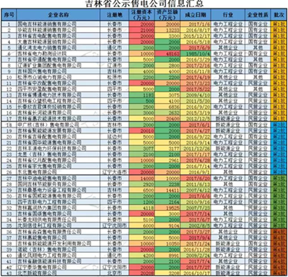 圖解 | 吉林四批43家售電公司信息匯總