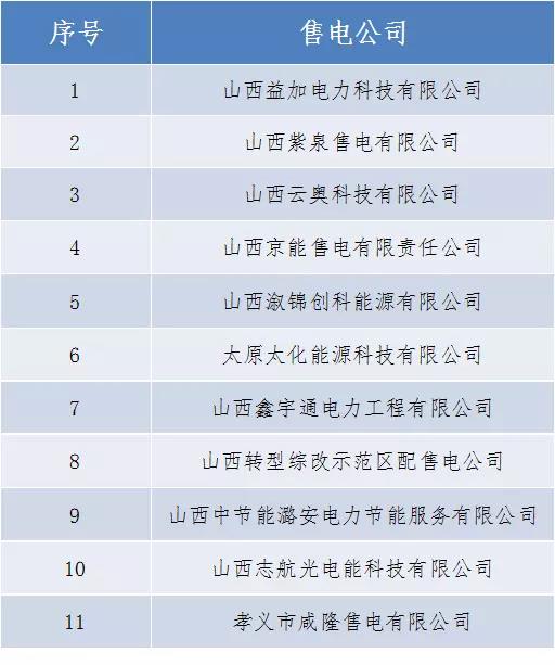 山西省第六批售電公司公示結(jié)果公告