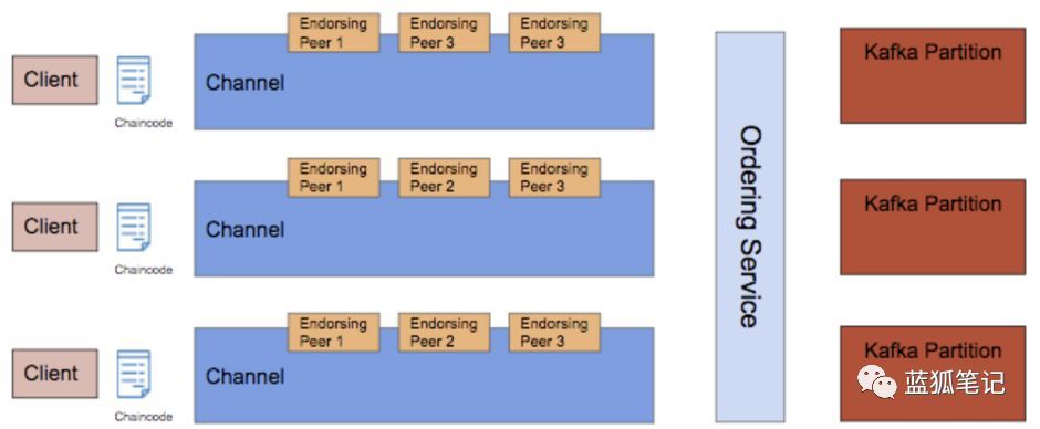 主要思想是渠道提供了在平臺內(nèi)移動交易的機會。在查看體系結(jié)構(gòu)時,OSN(ordering service nodes)的功能用于記錄Apache Kafka交易排序的功能。在數(shù)據(jù)流生態(tài)系統(tǒng)中,Kafka是一個功能強大的工具,具有將各種交易排序附加到單獨的Kafka集群并最終分區(qū)的功能。
