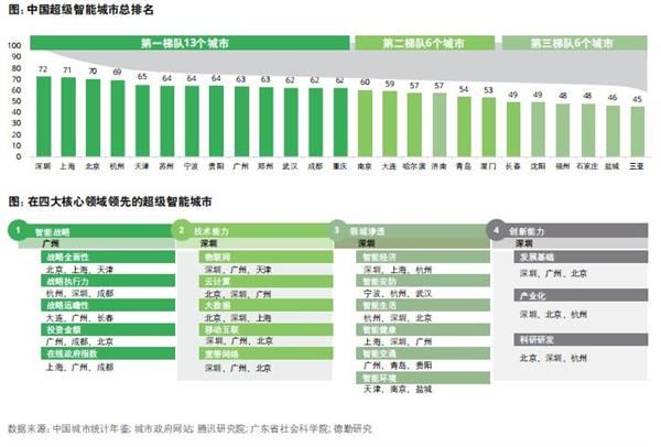 以下是中國(guó)智能城市總排名及在四大核心領(lǐng)域領(lǐng)先的超級(jí)智能城市: