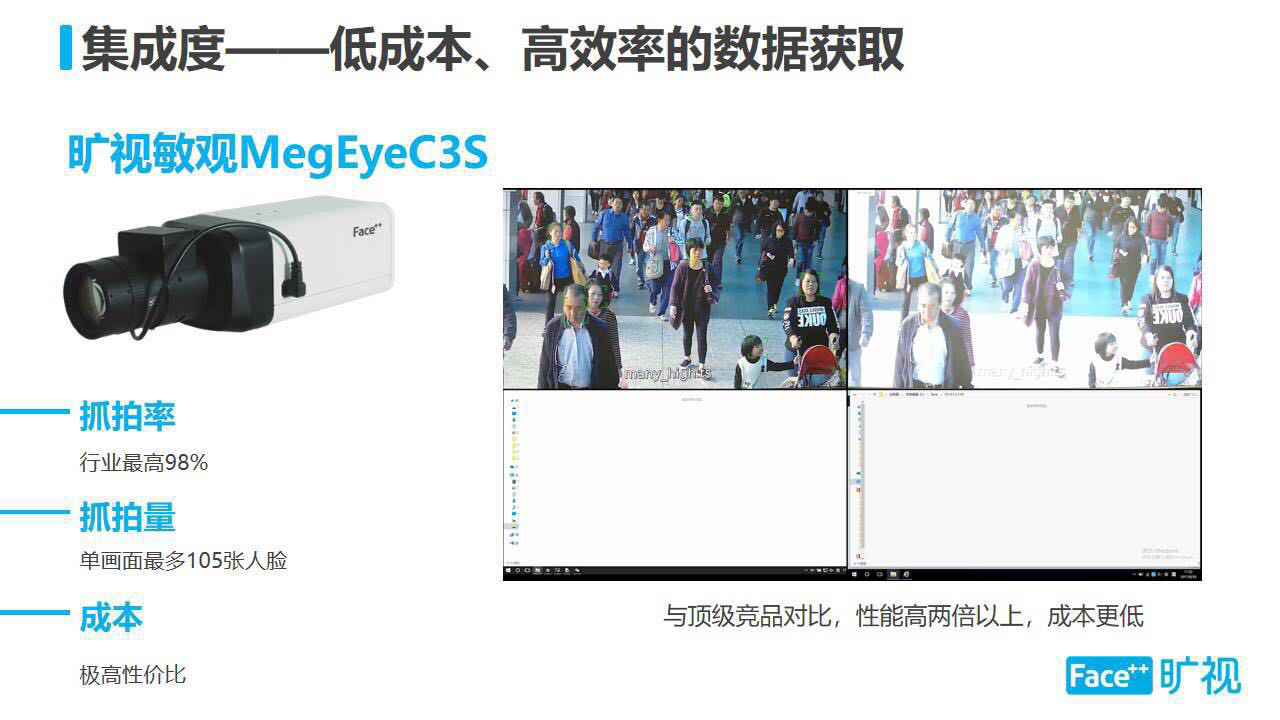 為此我們推出了“曠視敏觀MegEyeC3S”這款產(chǎn)品,抓拍率高達(dá)98%、單畫(huà)面抓拍量最多105張人臉、同時(shí)具有極高的性價(jià)比,與頂級(jí)競(jìng)品對(duì)比,性能高兩倍以上,成本更低。