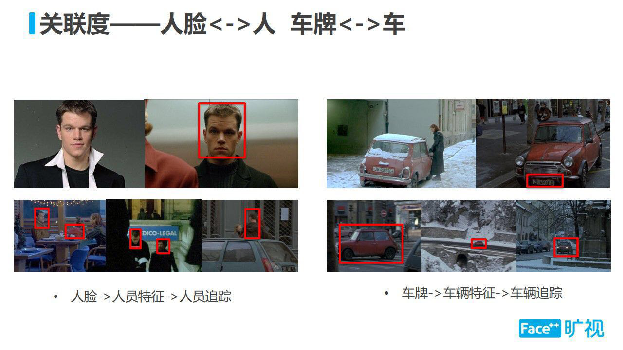 舉例來(lái)講,在視頻中我們有的時(shí)候能看到一個(gè)人的身體和人臉,換到另一個(gè)攝像頭就只能看到身體,事實(shí)上我們可以把行人識(shí)別和人臉識(shí)別關(guān)聯(lián)起來(lái)進(jìn)行分析。