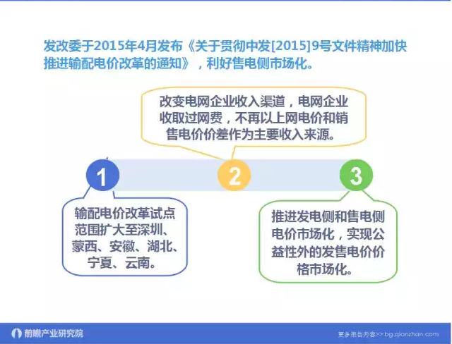 據(jù)媒體報(bào)道,電力體制改革6個配套文件即將出臺,售電側(cè)改革試點(diǎn)進(jìn)入倒計(jì)時。新電改會帶來很多巨大商機(jī),比如售電制改革,鼓勵社會資本市場進(jìn)入,包括配電領(lǐng)域混合所有制改革。所以從售電公司角度看,更多的關(guān)注電